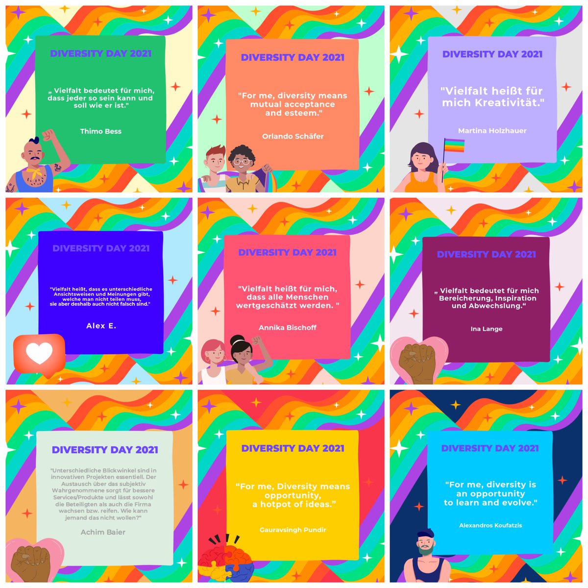 #Diversity Day#DDT21 and the European Diversity Month#EUDiversityMonth, we asked our employees what diversity means to them. Here are their answers.#FlaggeFürVielfalt#UnitedInDiversity @CharterDiversitypic.twitter.com/J3z8vRSqLs