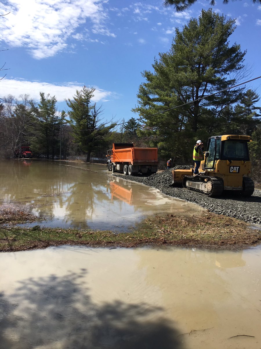 @DistrictMuskoka@townbracebridge raising Beaumont Drive with aggregate to assist in facilitating vehicle movement through flooded road section.#Flood2019 pic.twitter.com/DMl9zXjahb