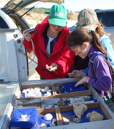 Celebrate! Feb.11 is Int'l Day of Women & Girls in Science. Scientist Ann Tihansky shows fossil samples to girls in