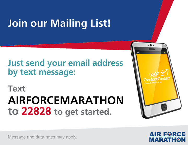 RT DaytonHoopla: RT AFMarathon: Are you getting our email newsletters? If not, text AIRFORCEMARATHON to 22828!