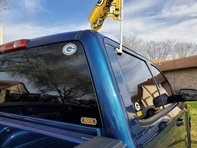 Packerfying my truck is becoming an obsession. This is just a little bit of what's on my truck. I'm currently interested in finding someone to do a GBP wrap so we shall see. I want EVERYONE to know who I rep!