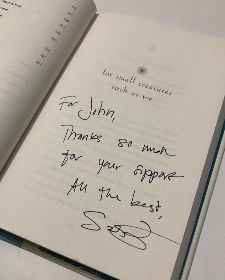 @SashaSagan What a lovely, heartfelt book you have written. Incredibly moving. The love you have for your father and how much you miss him is palpable. Keep strong, and keep the flame alive.#ForSmallCreaturesSuchAsWe -