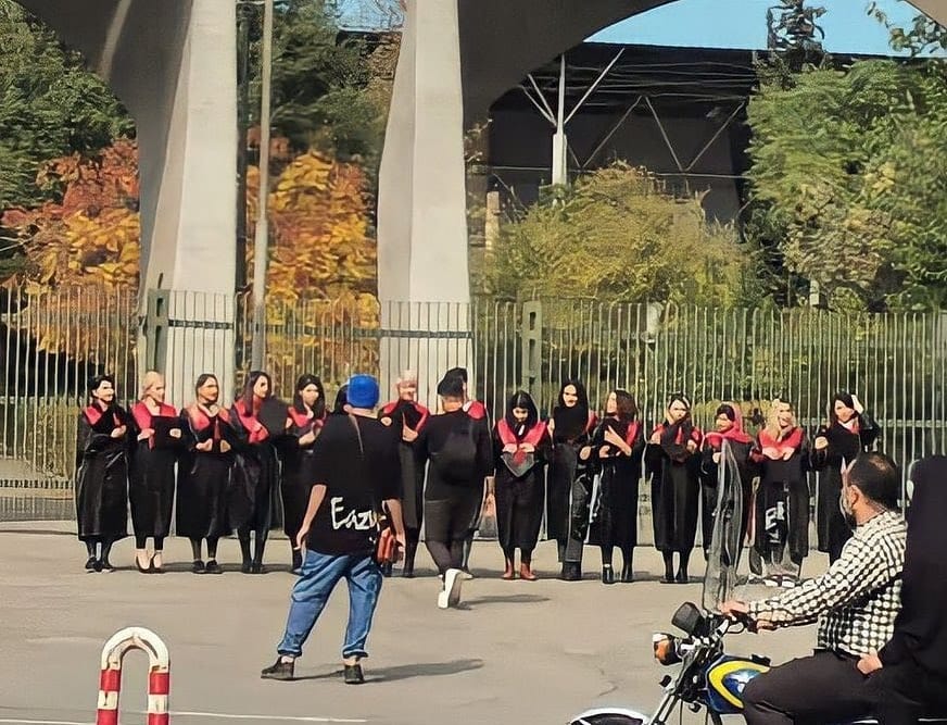 A practical lesson in civil disobedience A number of Tehran University students stand before the university entrance without