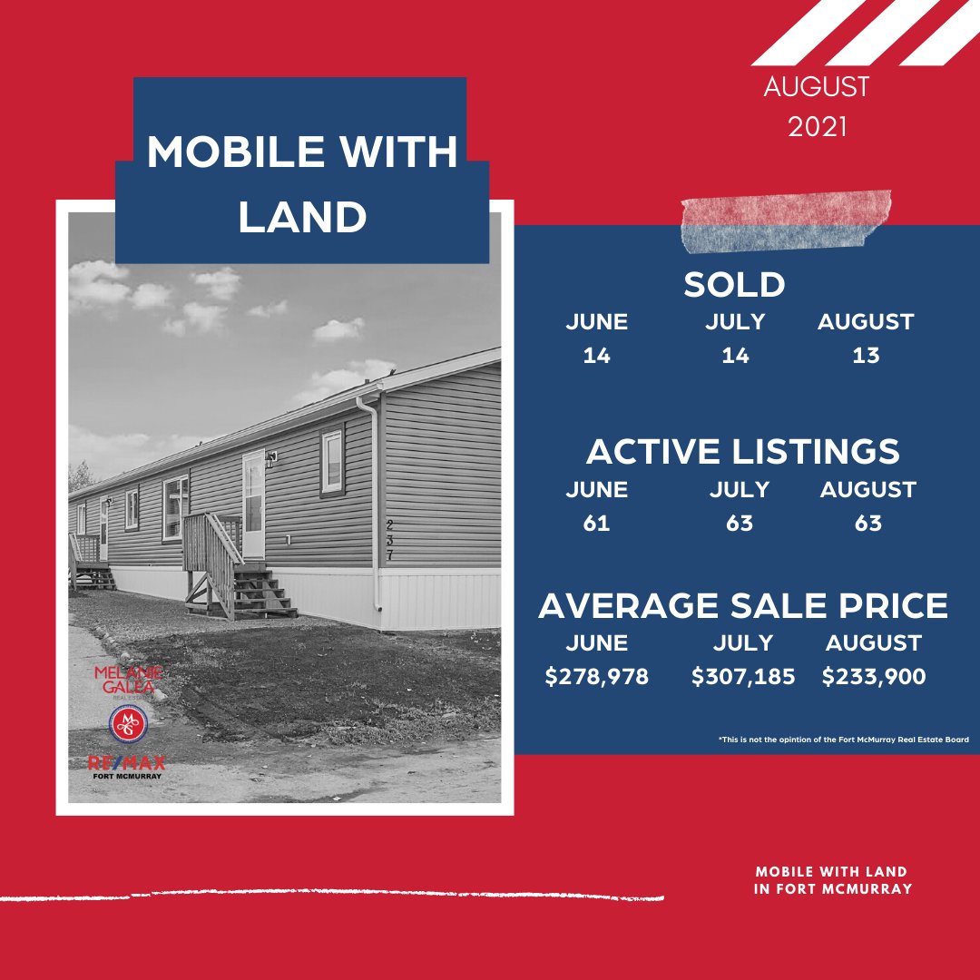 Here is the market update for August when it comes to Mobile homes with land. Scroll through to see your neighbourhood update. For more information http://www.fortmcmurraystats.com
