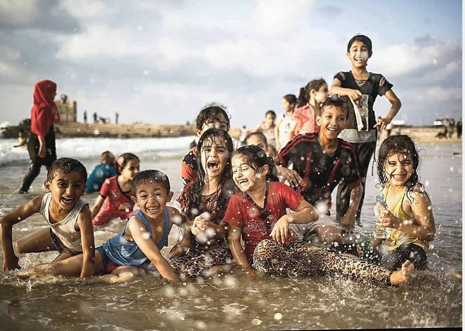 Childhood in Gaza under siege. Gaza beach Palestine.