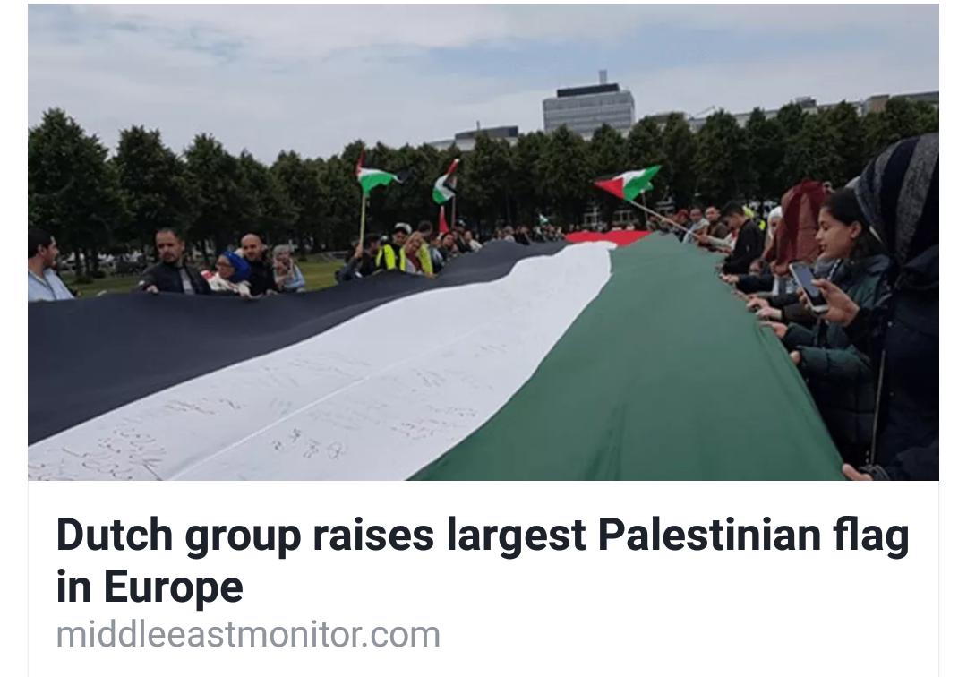 #FREEPALESTINE An organisation in the#Netherlands has raised the world’s largest#Palestinian flag in#Europe