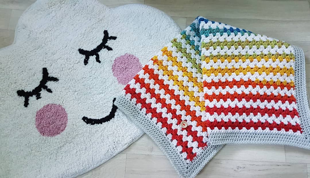 Our new rainbow blanket is such a gorgeous pop of colour for any nursery or pram! Retro design, stunning bright colours and