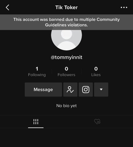 tommy got banned on tiktok again! looks like it’s for good as he’s been banned for over 7 hours now :(