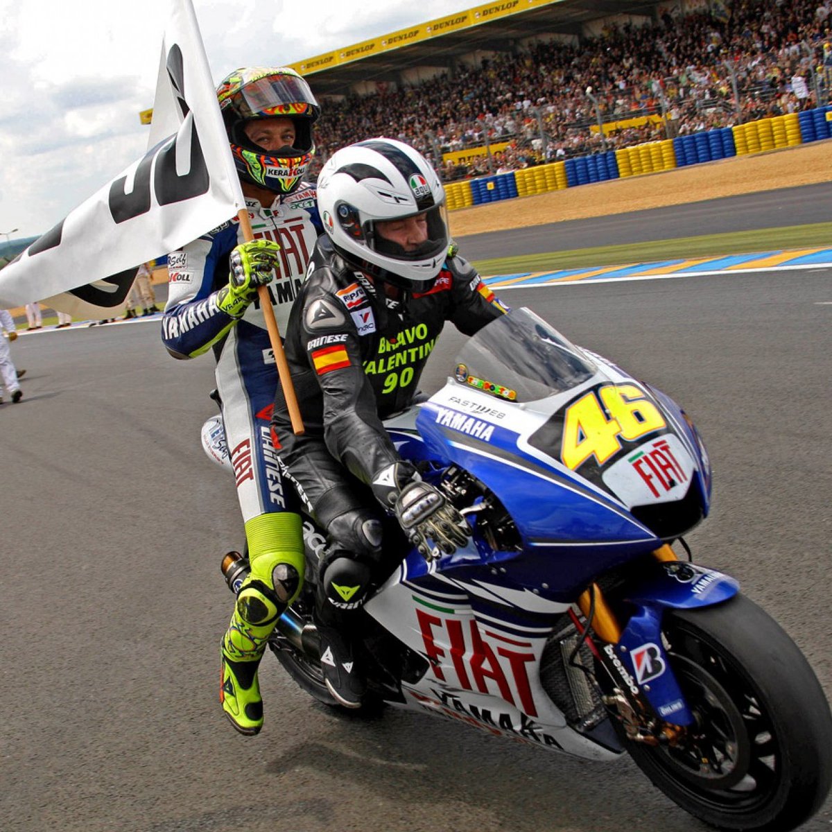14 years ago today, @ValeYellow46 equalled the great Angel Nieto with his 90th career victory, before the great Spaniard joined him for a lap of honour