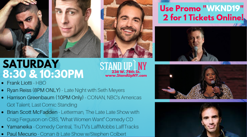 #Friday@PaulVirzi@WarrenHolstein@JayJurden@OphiraE@jaltucher@aaronbergcomedy#Saturday@harrisoncomedy@ryanreiss@bscottmcfadden@yamaneika@PaulMecurio@FrankLiotti#Sunday@gregstone_@MarkRiccadonna@BrendanSagalow@Scott_Chaplain http://www.StandUpNY.com#PROMO WKND19pic.twitter.com/dloOY4Gooj