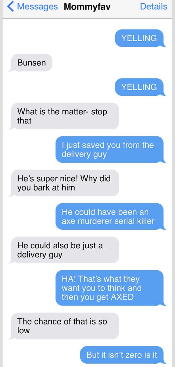 Every week my dad saves text messages from me to the family and on Friday he shares them. It’s Texts From Bunsen!!!