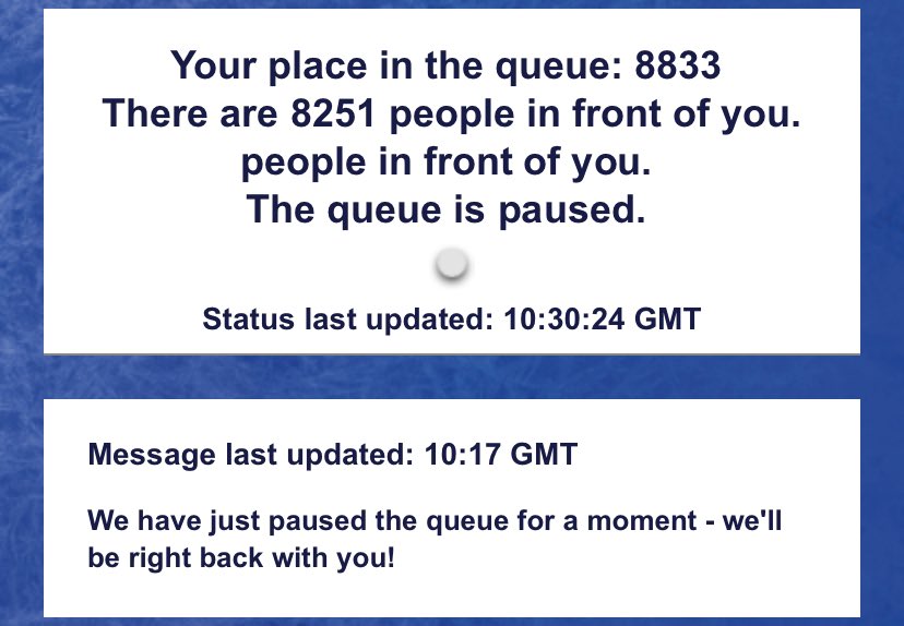 #FrozenLondon ticket queue has been paused for over ten minutes now. pic.twitter.com/9e5vTXJQw8 -