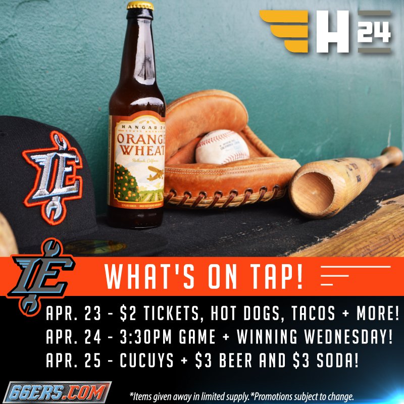 @Hangar24Brewing for the next 3 games against the@RCQuakes! We continue the series with $2 Tuesday tonight! Gates open at 6pm. To purchase tickets, visit us online or purchase at the Box Office!#FueledByFun#WhatsOnTappic.twitter.com/HdA9N4p7cG