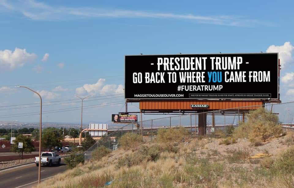 @NMSecOfState makes it known! "Sound familiar, Donald J. Trump? Here in NM, we don’t stand for your hate. We celebrate our differences & take pride in our diversity. You are not welcome here."#FueraTrump pic.twitter.com/pdjXDh27Q9