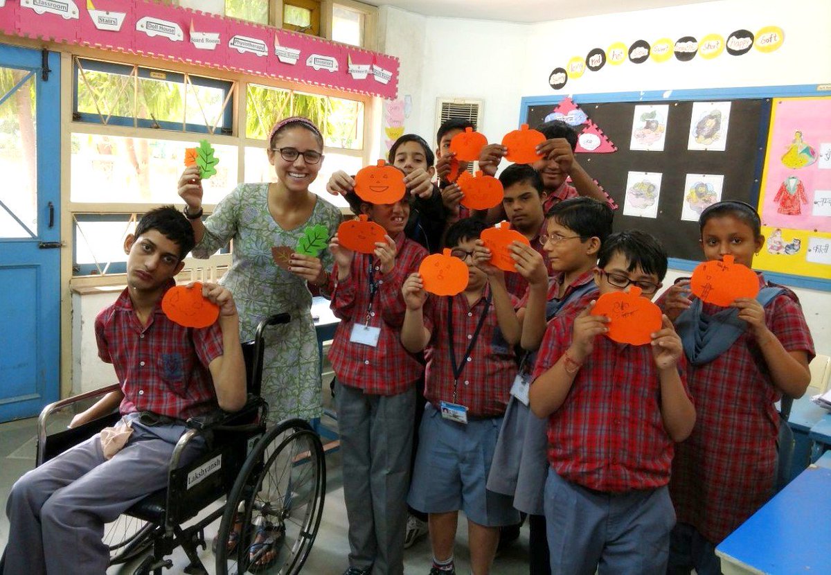 #Fulbright-Nehru English Teaching Assistant, Yasmina Haddad celebrating#Halloween at Disha Foundation in Jaipurpic.twitter.com/EjUsvjvNoq