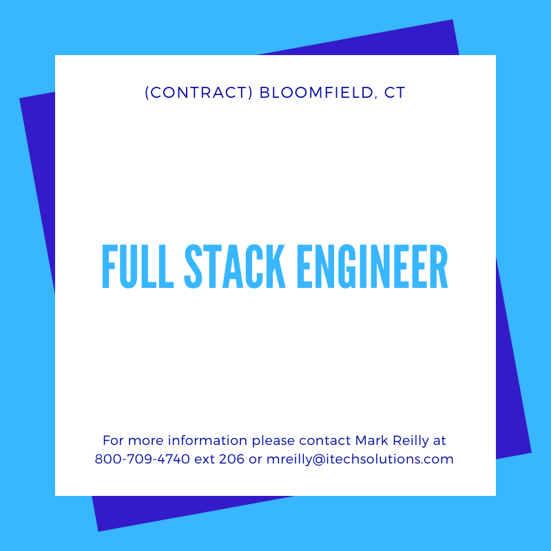 We have an opening for a Full Stack Engineer for a Contract position in Bloomfield, CT Apply Here: https://buff.ly/2uRUbh4