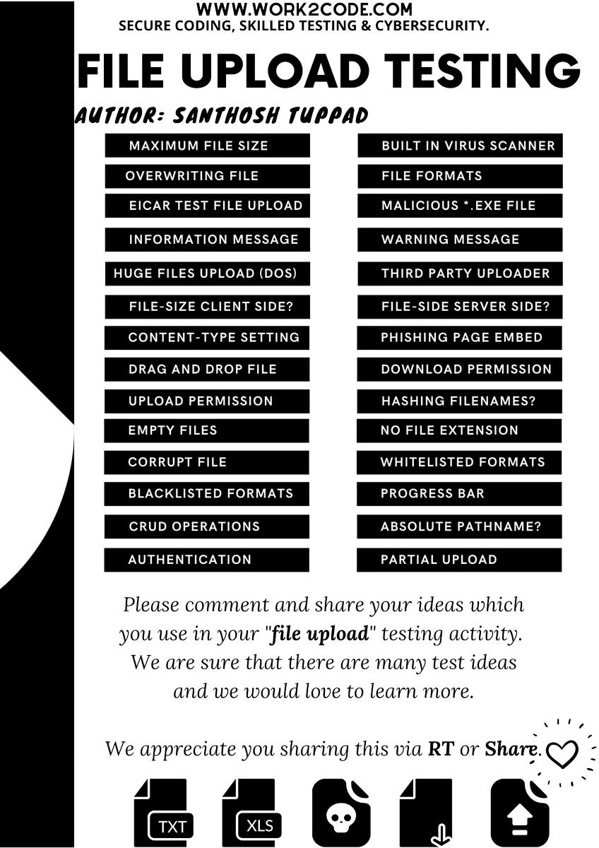 #Testing#File#Upload#Security#Functional#FileFormats#FileUpload#Work2Codepic.twitter.com/wjpWZBjfED
