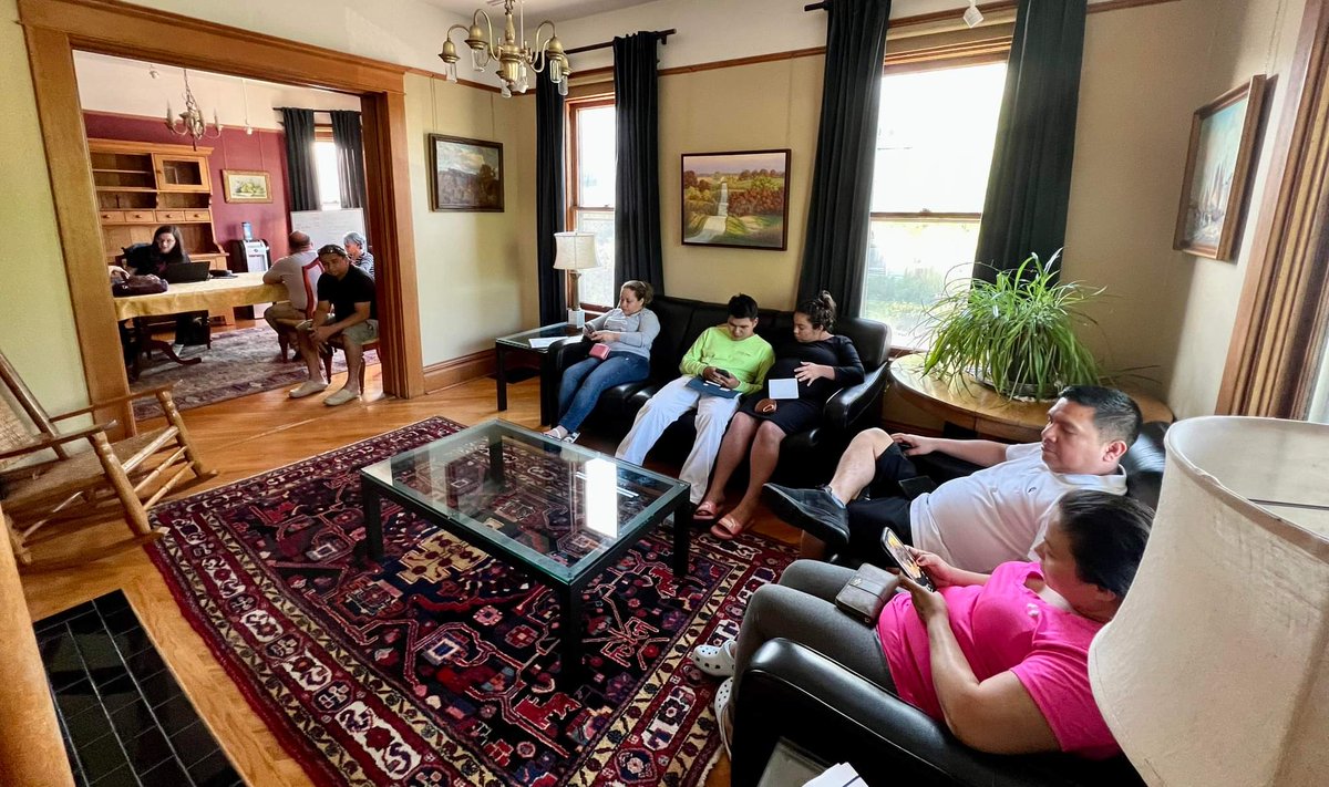 The Escucha Mi Voz direct assistance clinic at the College Green Catholic Worker House is packed tonight