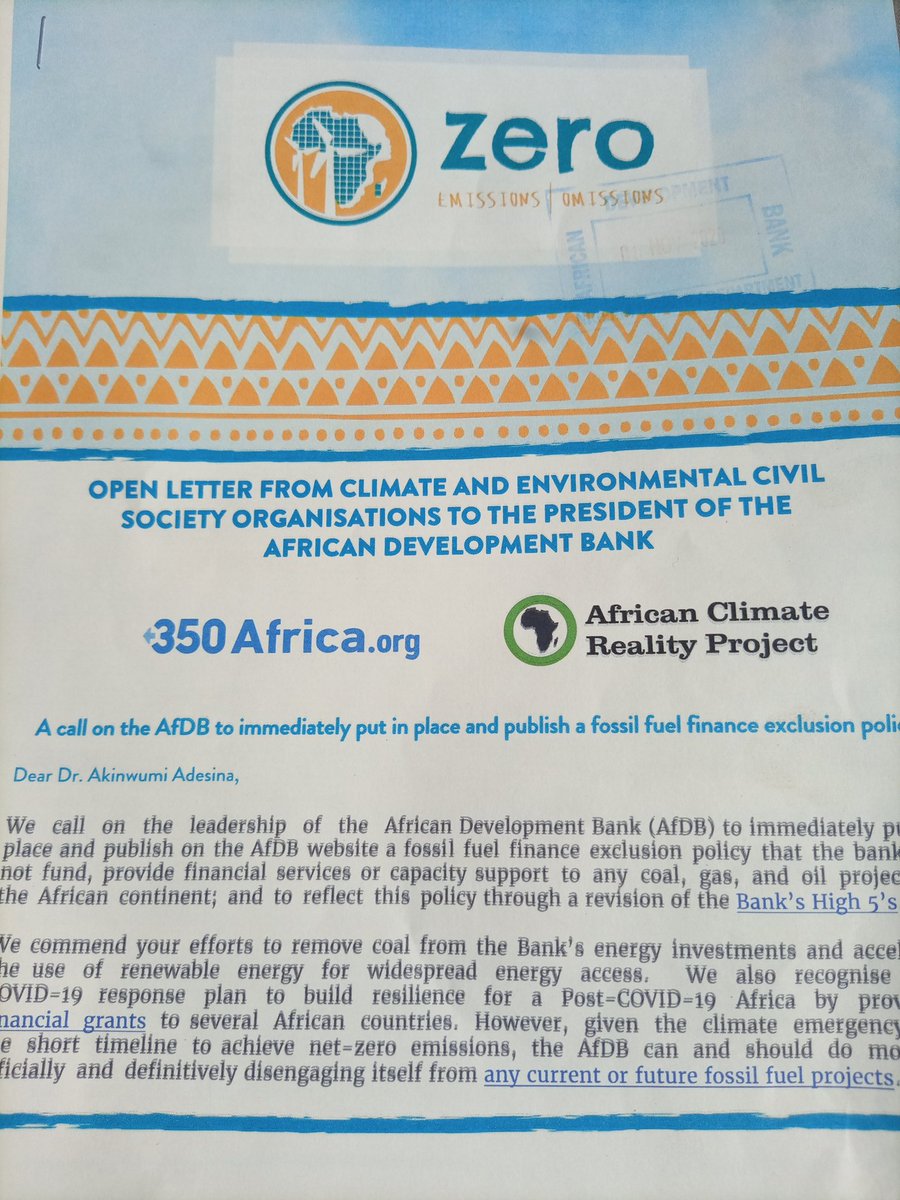 @AfDB_Group calling them to#StopFossilFuelFinancing and fund green initiatives.#FundTheFuture#FinanceinCommon2020pic.twitter.com/NAkBllBUDN