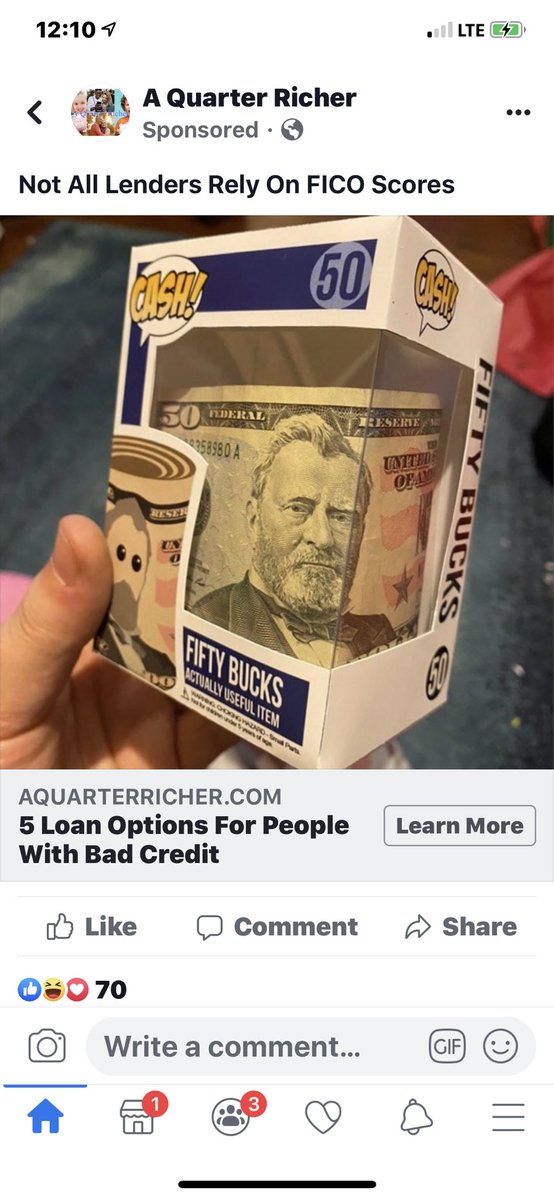 So this lending company is trying to shade funko pop collectors that they are somehow not “useful”