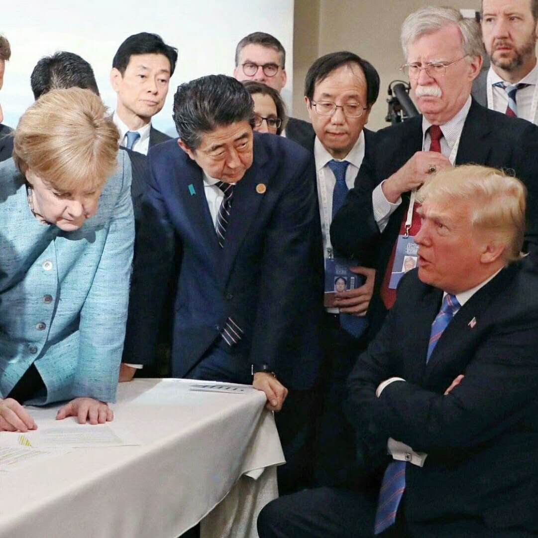 Iconisch. Het verhaal van dé foto van de top https://www.nrc.nl/nieuws/2018/06/10/waarom-deze-foto-van-de-g7-nu-al-iconisch-is-a1606039 …
