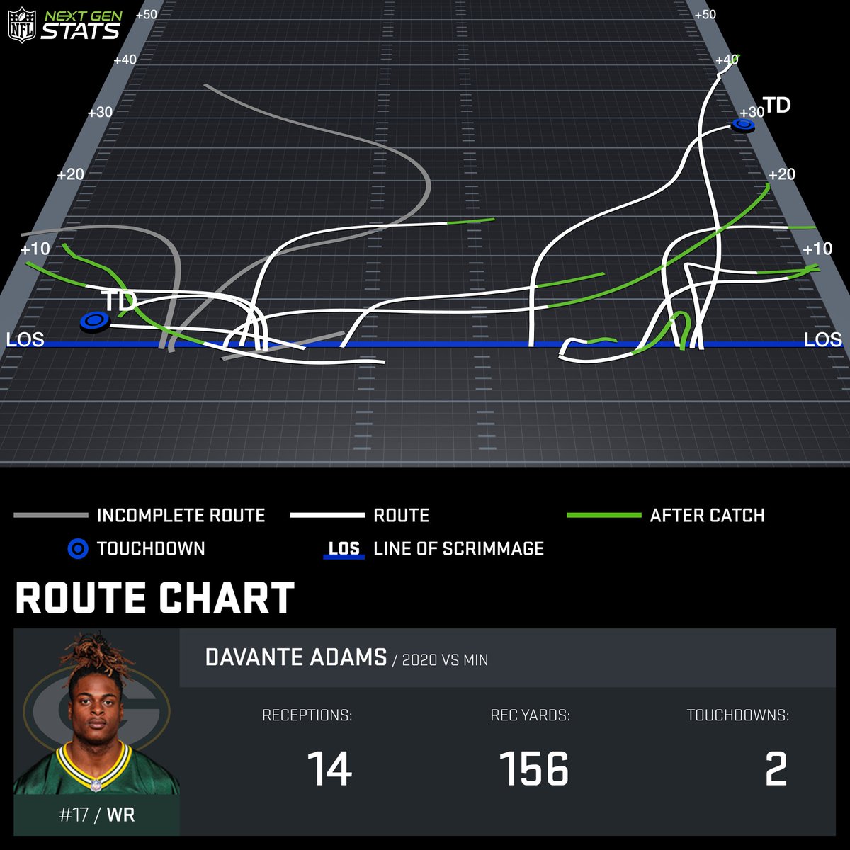 Davante Adams ran 9 out-breaking routes* out of 43 total routes in the