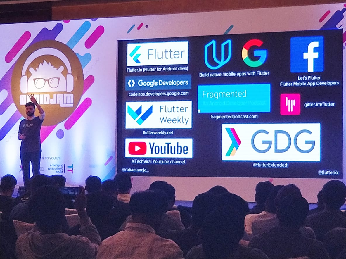 #flutter as@rohantaneja_ delivered a powerful & engaging talk on#Flutter Wondering how you could get started on#Flutter? Here's a list of resources listed by him & you could also attend a#GDG meet-up near you → https://goo.gl/W7wkPP pic.twitter.com/kAIkDwewh0