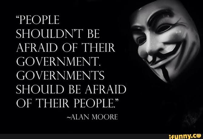 People shouldn't be afraid of their government. Governments should be afraid of their people. ~Alan Moore
