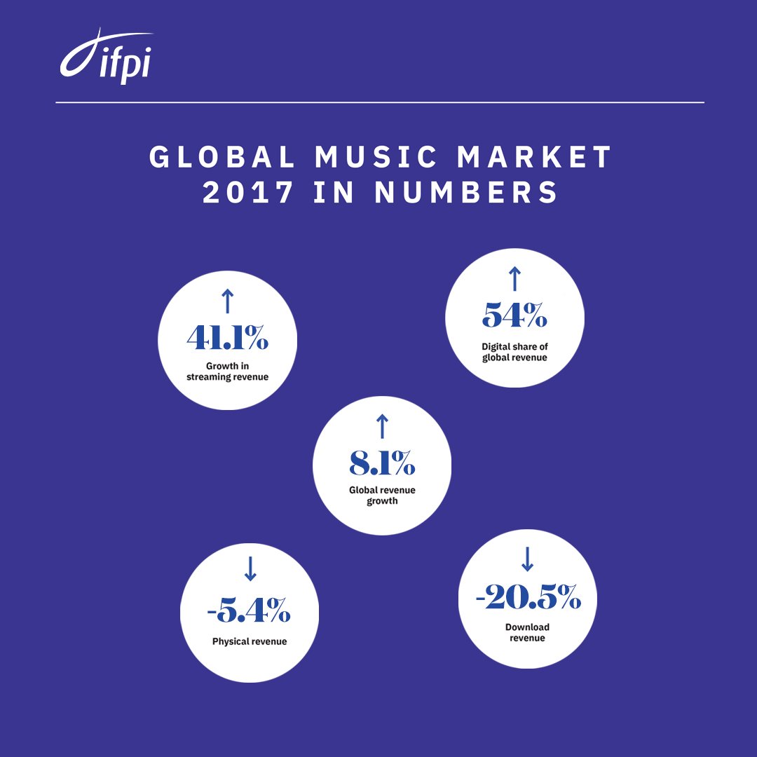 To find out more about the state of the industry read the full Global Music Report 2018 at http://www.ifpi.org #GMR2018 pic.twitter.com/4hZiZ7aGUa -