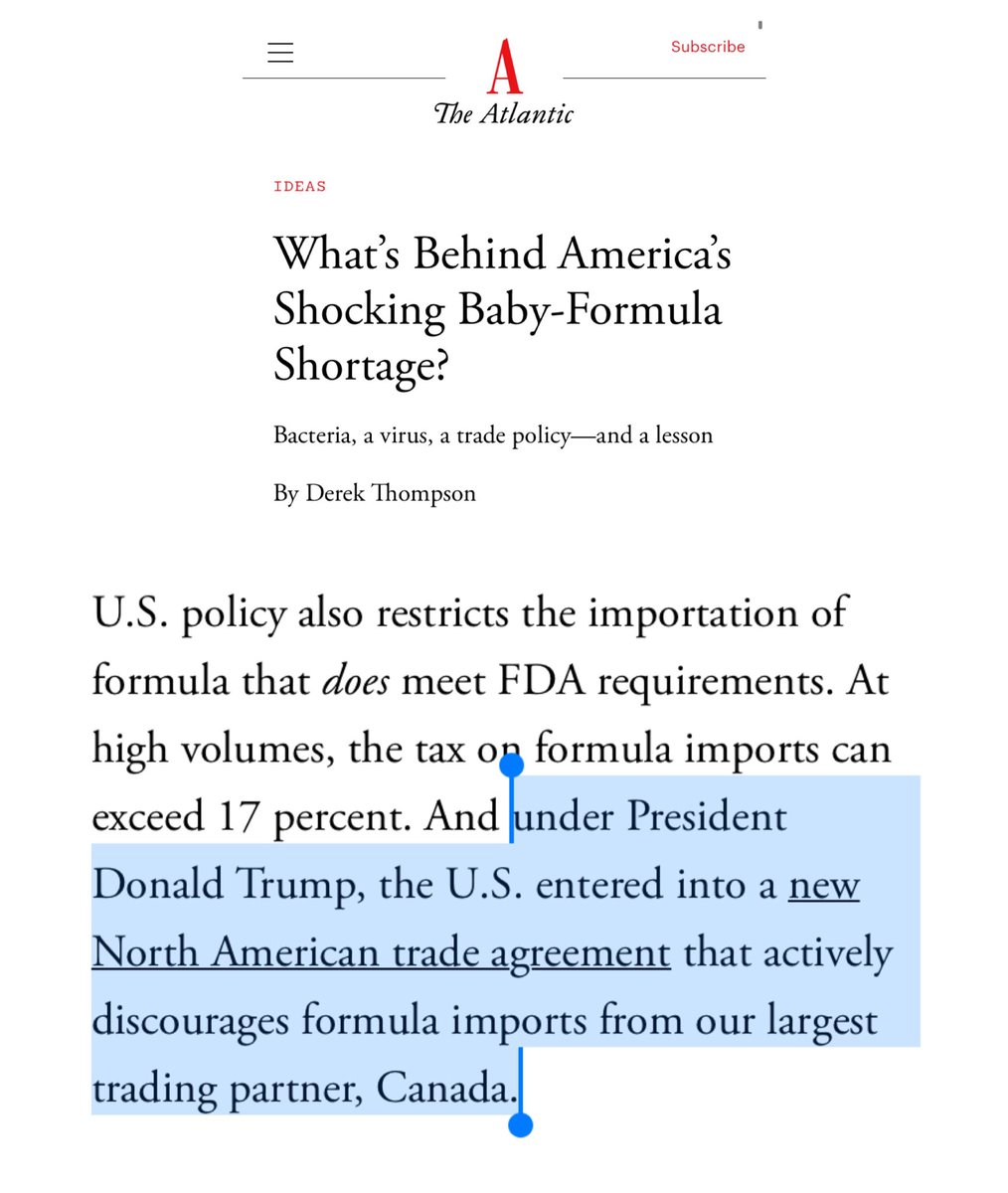Joe Biden is still cleaning up in the wake of Donald Trump! Trump's North American Trade deal discourages imports of baby-formula from Canada No doubt something lobbyists for Abbott & other US makers pushed for
