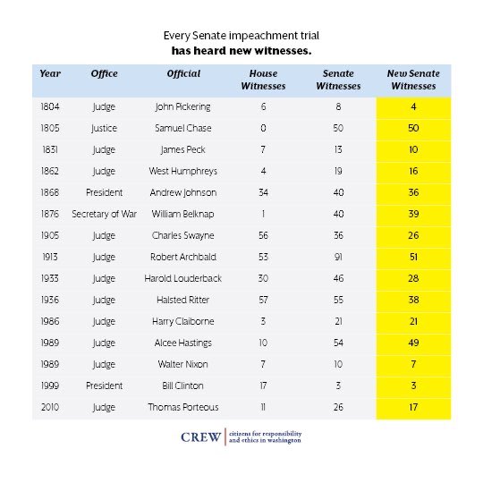 Every other impeachment trial had witnesses.