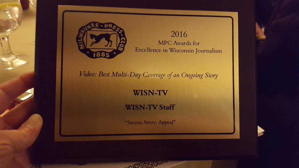 @colleenmariehen and#WISN12 team! Gold award for coverage of#stevenavery appeal.@MKEPressClub Awards.#grateful pic.twitter.com/e4qu6micuq – at InterContinental Milwaukee