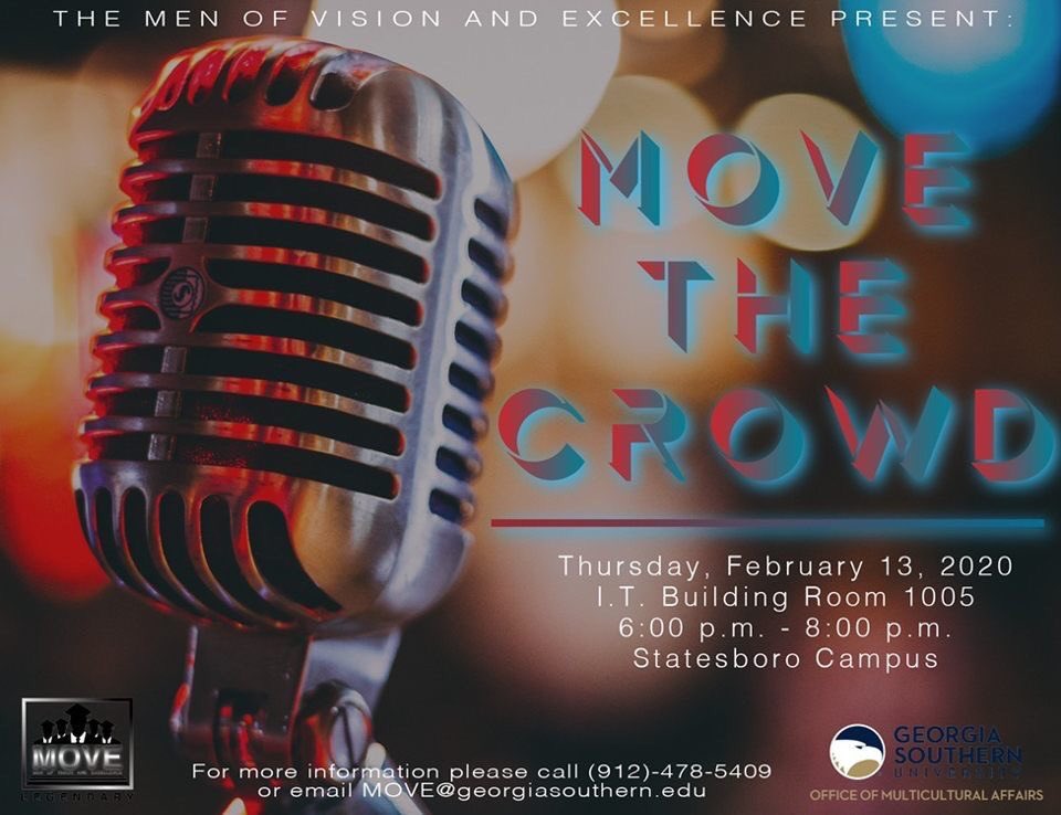 The Men of Vision and Excellence Present: MOVE the Crowd, hosted by @Ta_The_Godson Come hear what the legendary poets around campus have to offer! Next Thursday 6pm, I.T. Building Room 1005. See you there