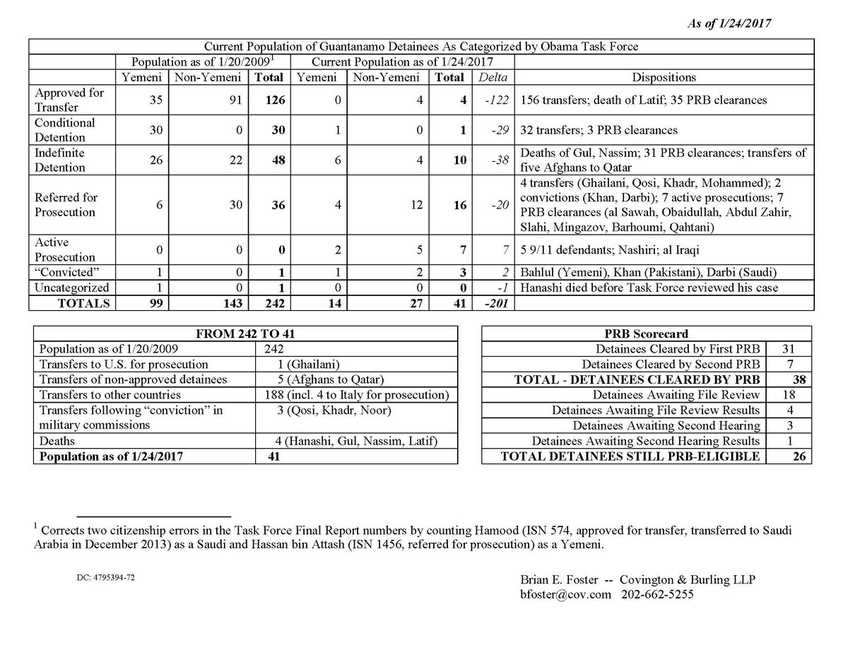 @POTUS44 final transfers from#GTMO, 41 men remain: 5 cleared for transfer, 26 awaiting clearance. Still just 3 convicted, 7 charged. pic.twitter.com/NJ47pBJJSU