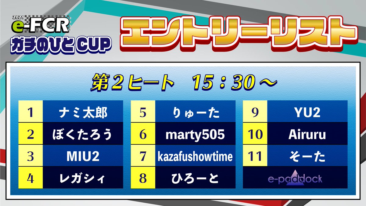 1月30日(土)e-FCR ガチのひとCUPにエントリーしました。 第1ヒートの皆さんよろしくお願いします…!
