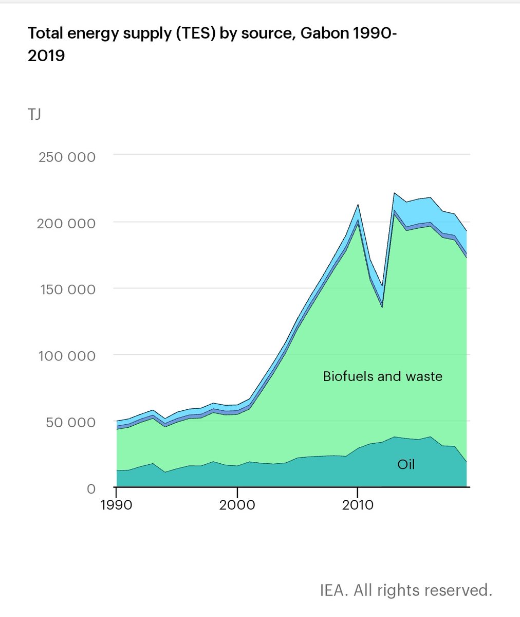 Gabon is a country to watch in Central Africa. A $16 billion economy has got an interesting energy mix. 80% comes from bio fuels & waste. 20% from oil,gas. Noteworthy that they reduced GHG emissions by 28% in last 5 years.