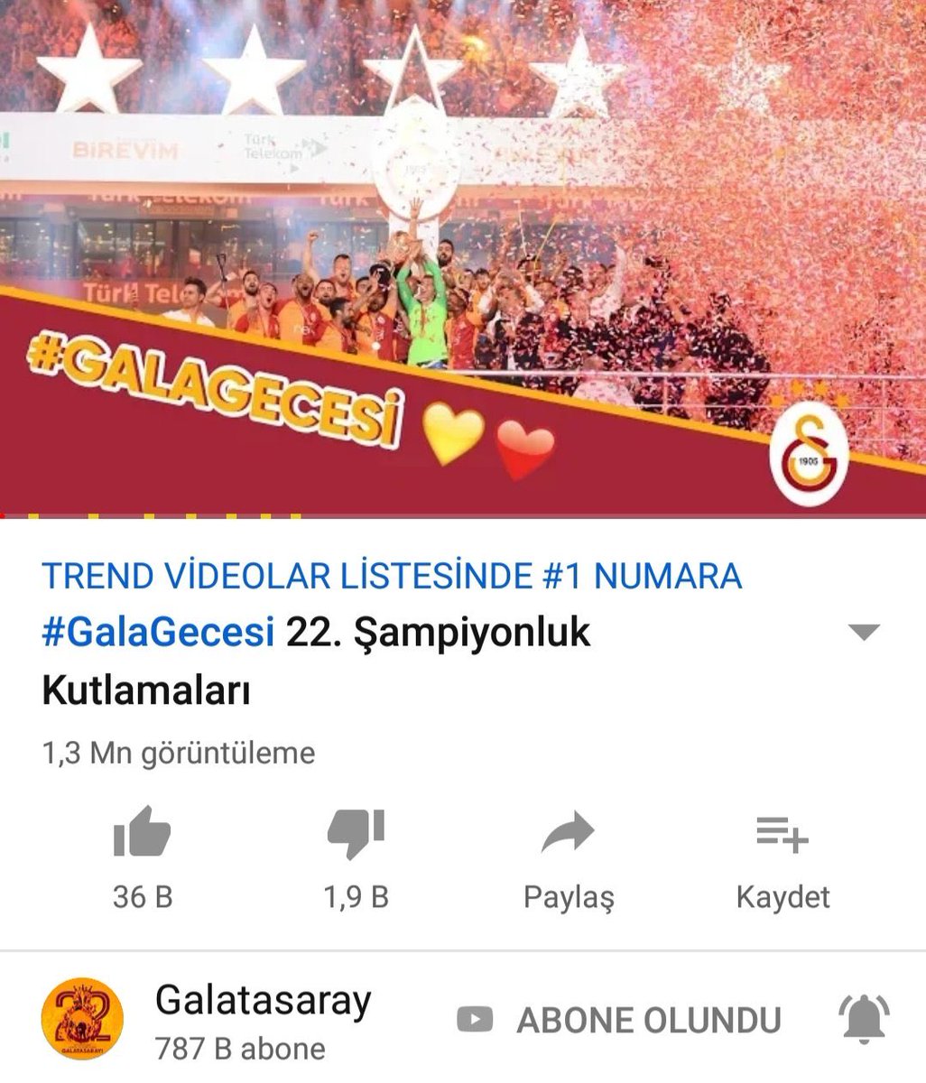 #GalaGecesi videosu, trendlerde 1. Sıraya yükseldi. Kulübümüzün Youtube kanalına abone olup destek olmak için
