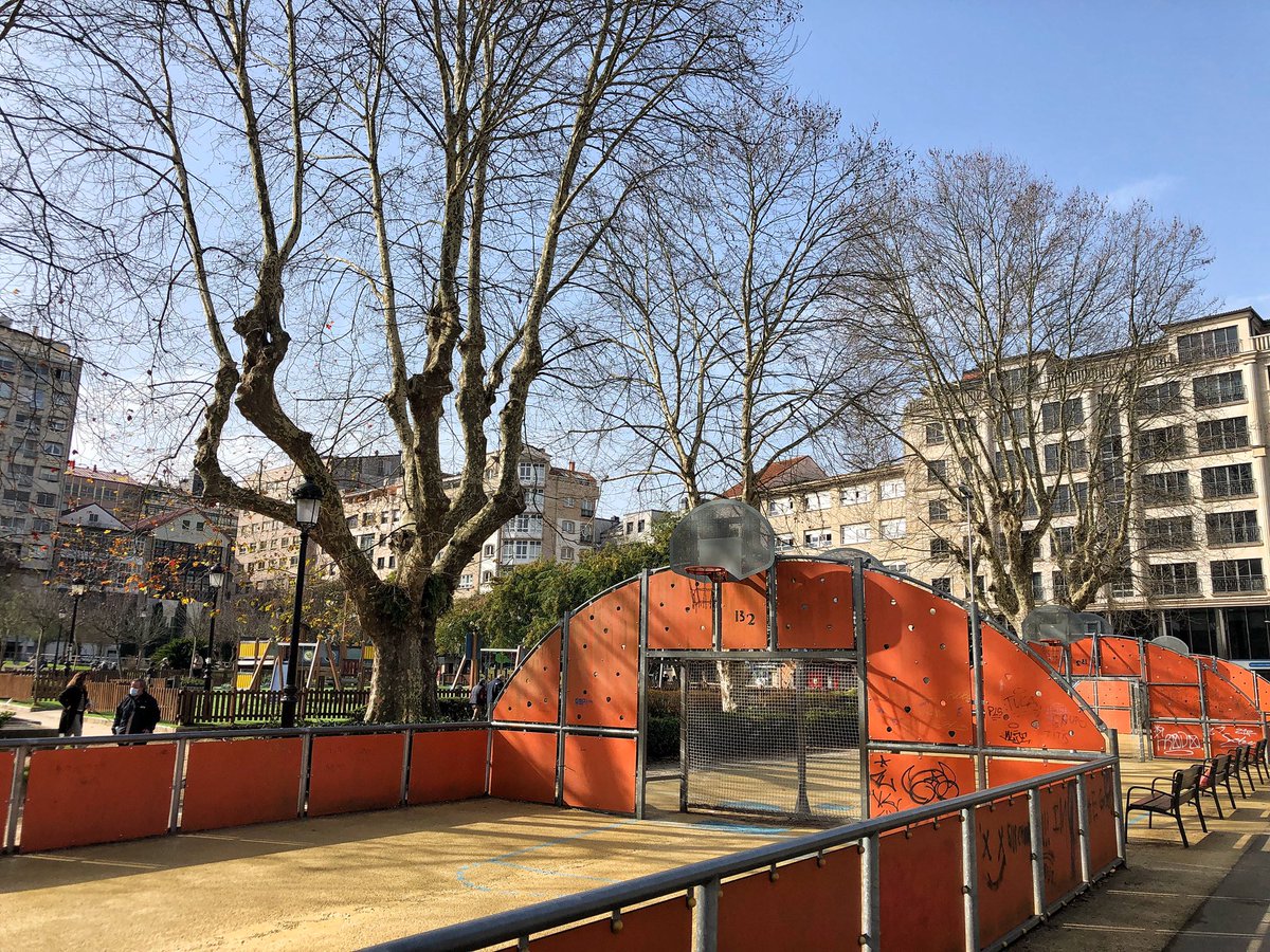 Football and basketball courts one minute walk from the main shopping streets. Urban living as it should be: people before cars. #Galicia pic.twitter.com/N9IO7VHIiC