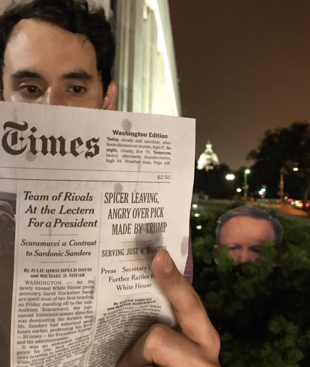 Found Sean Spicer hiding in a planter near Lincoln Park.