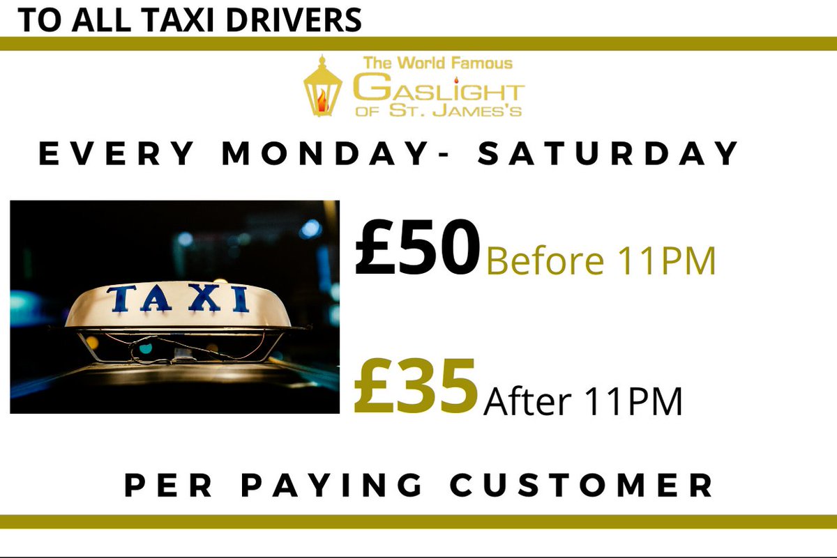 Drop any paying customer off at Gaslight tonight before 11pm and you’ll earn £50 cash back, GO, GO, GO!