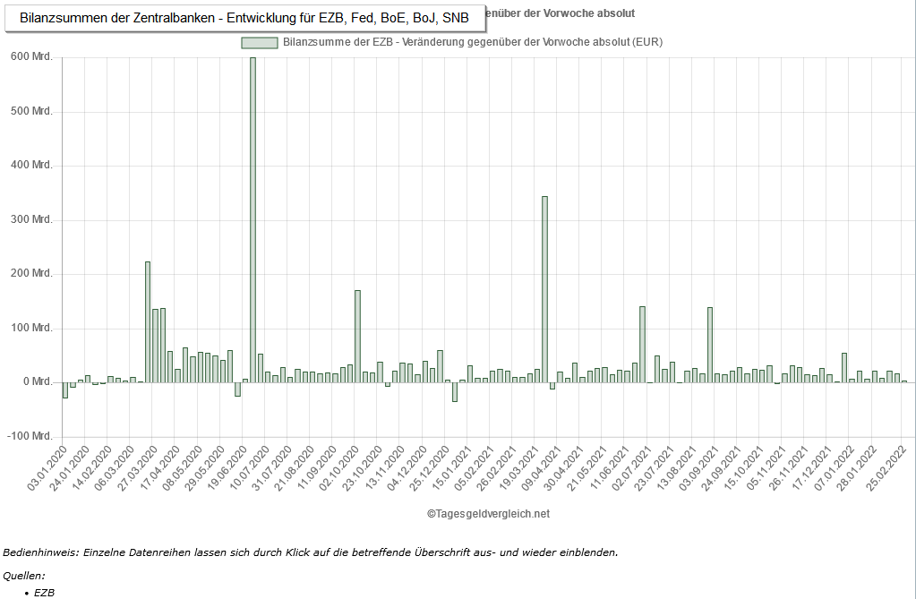 Unsere wöchentliche Auswertung auf https://www.tagesgeldvergleich.net/statistiken/bilanzsummen-der-zentralbanken.html#ezb … zeigt: in den 113 Wochen seit Beginn des Jahres 2020 gab es bei de