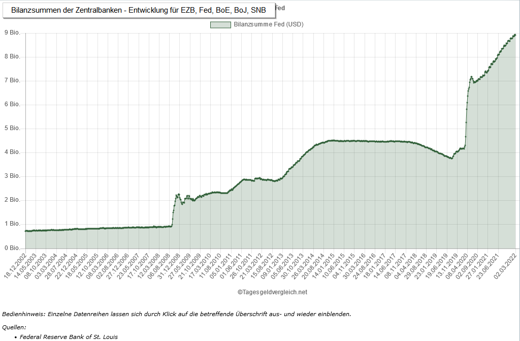 #Bilanzsumme der#FederalReserve auf https://www.tagesgeldvergleich.net/statistiken/bilanzsummen-der-zentralbanken.html#fed … zeigt die Auswirkungen von#Coronakrise und lockerer#Geldpolitik 4 Wochen: +0,35% (+31,244 Mrd. USD) Seit Anfang 2021: +20,93% (+1.541,105 Mrd. USD) Seit Anfang 2020: +113,35% (+4.730,825 Mrd. USD) pic.twitter.com/bZ817448cB
