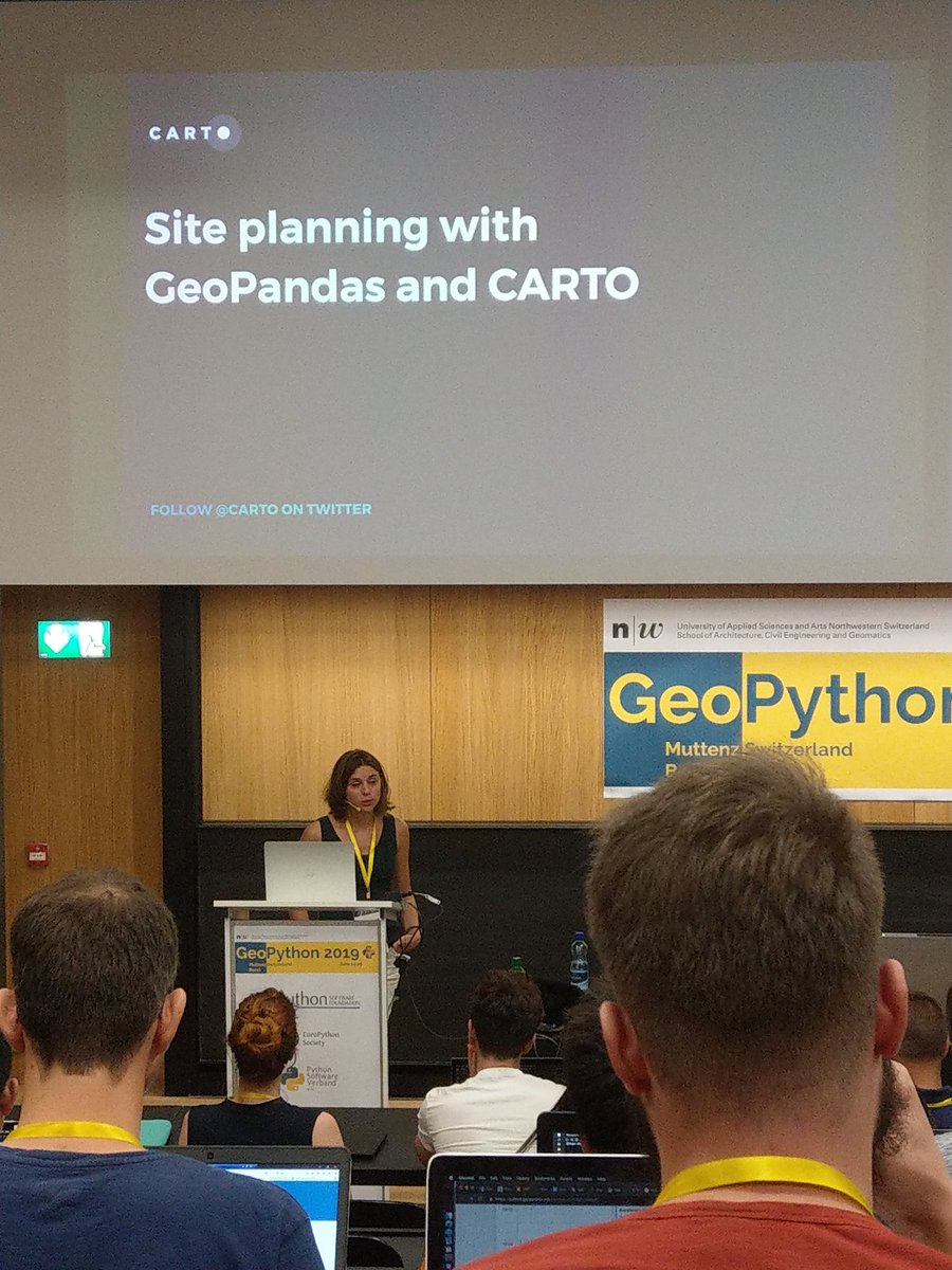 @GeoPythonConf, Giullia Carella, CARTO’s data scientist, is discussing how#DataScience workflows can be used in conjunction with our platform to improve#SitePlanning applications!#GeoPython https://carto.com/blog/spatial-data-science-site-planning/ …pic.twitter.com/5SLB2Bc9Df