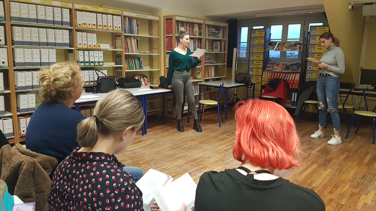 Mise en voix de "Salina" de Laurent Gaudé pour des élèves de 1ère technologique avec Françoise Lervy. Opération "Plume de Paon des Lycéens" organisée par