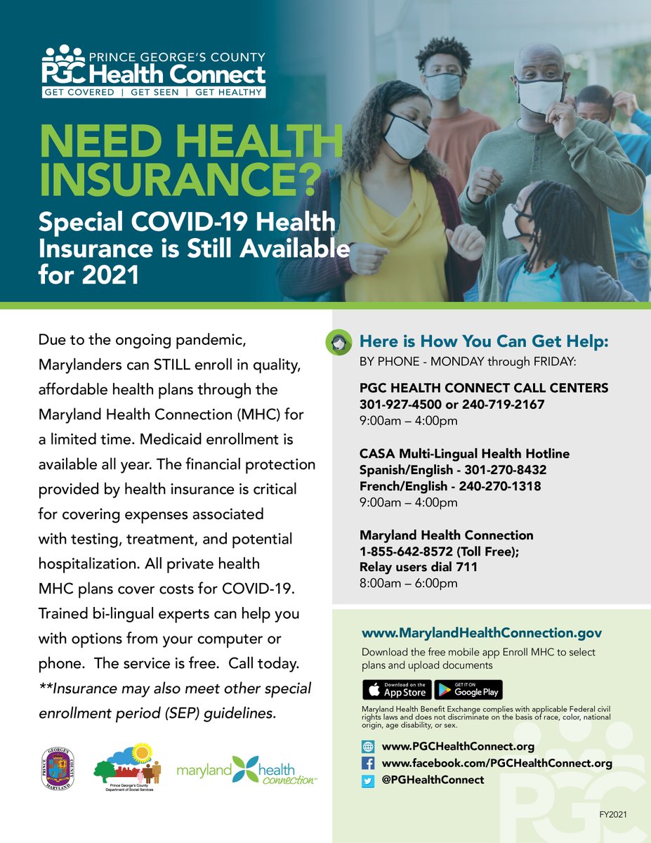 There is still time to enroll in health insurance for 2021 coverage. Many who enroll get some form of financial help. To learn more and explore coverage options, visit: https://www.marylandhealthconnection.gov/