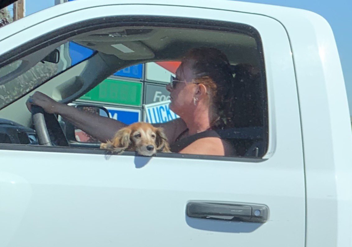 Another dumb ass with their dog in their lap. Do you realize when you get hit your airbag goes off you will kill your dog between the airbag and your body.