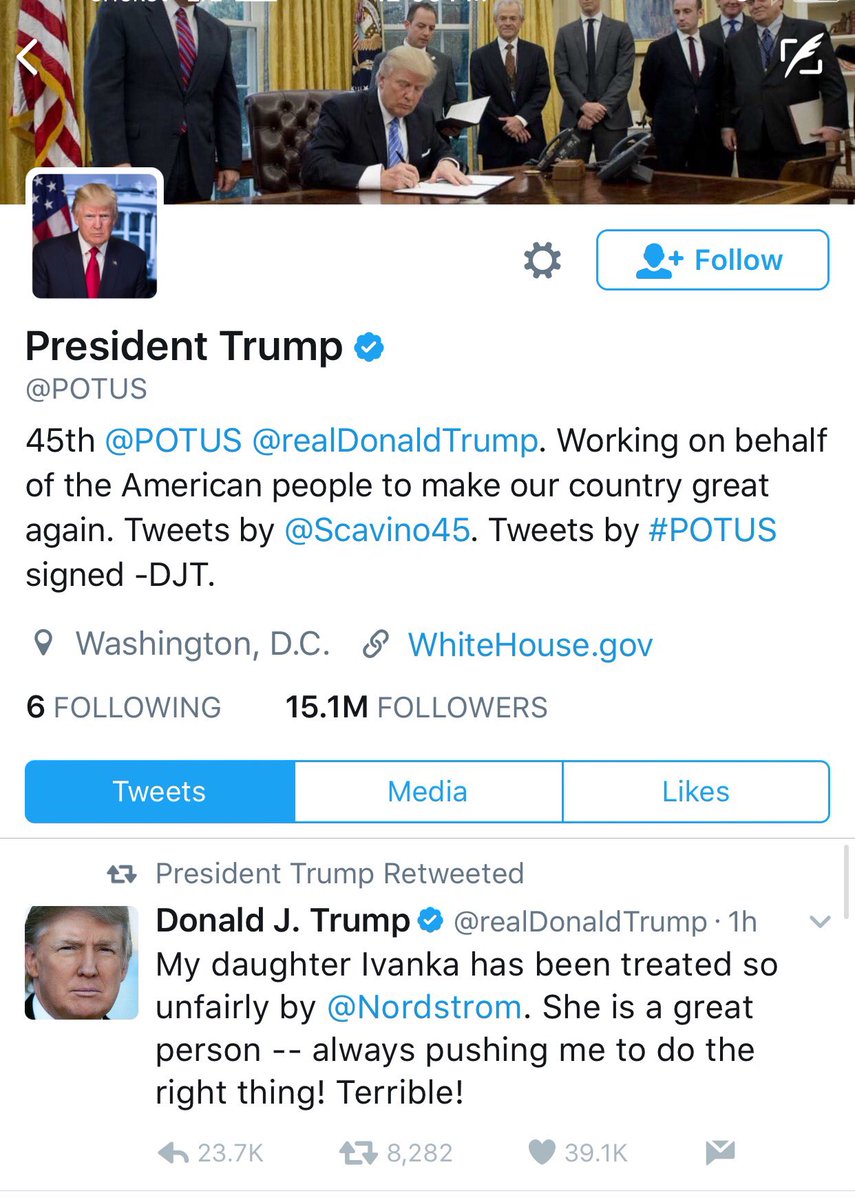 @realDonaldTrump uses an Presidential account to push personal issues.@POTUS#GhostOfNoNation pic.twitter.com/9HB8djKNFa