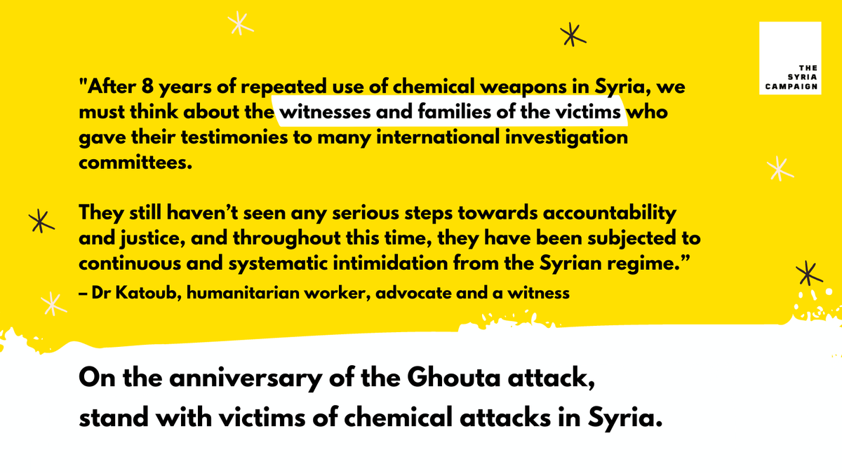 #Ghouta chemical attack and to demand justice for the 1,127 civilians who were killed 8 years ago by the Syrian regime.#DoNotSuffocateTruthpic.twitter.com/TGvdhWGanX