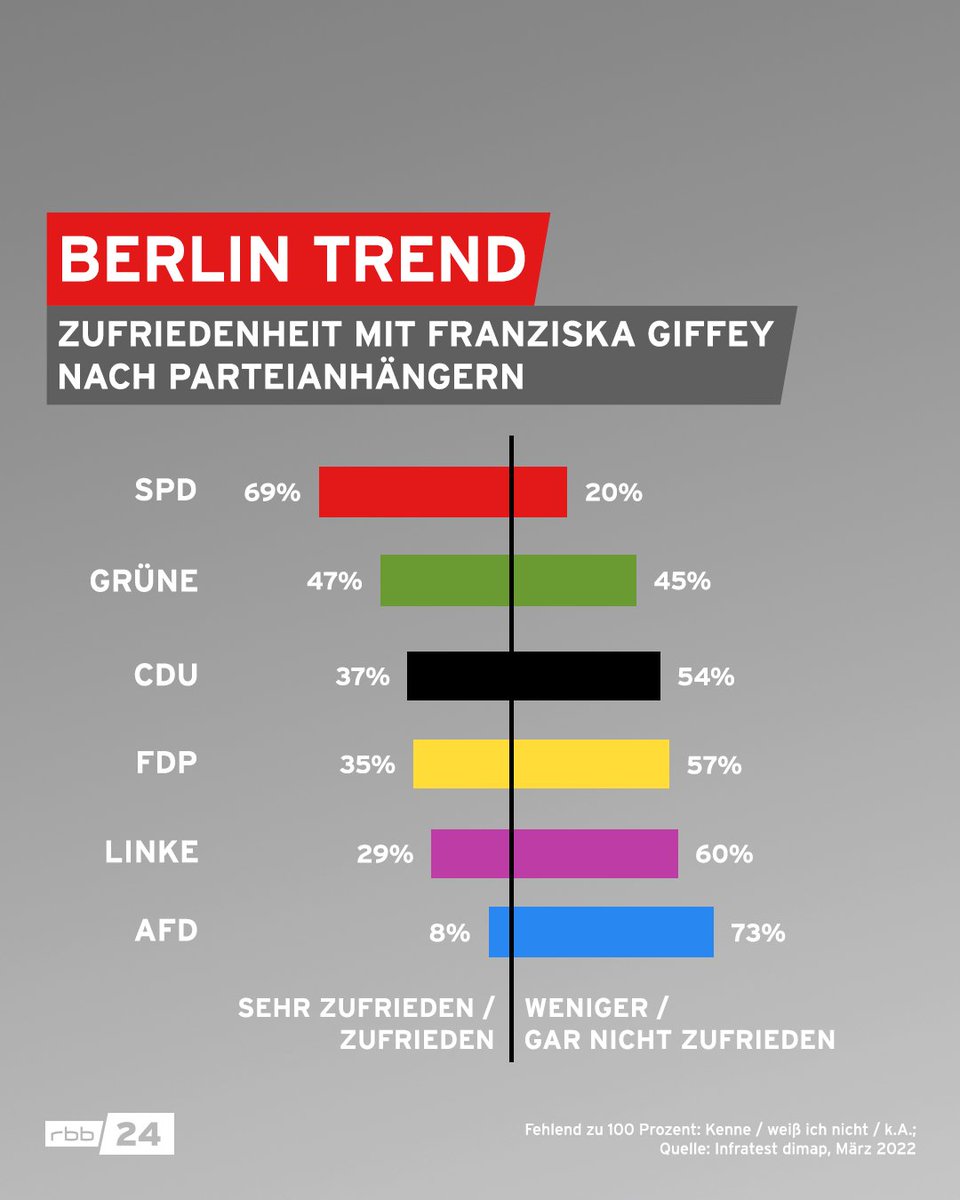 #Giffey laut aktuellem#BerlinTrend aus dem Lager der#SPD - den wenigsten aus den Reihen der#AfD. Bei den Parteianhänger:innen der#Grünen ist das Verhältnis fast gleich groß. 3/5#berlin#abgeordnetenhaus pic.twitter.com/Z3vbzt4Pyn