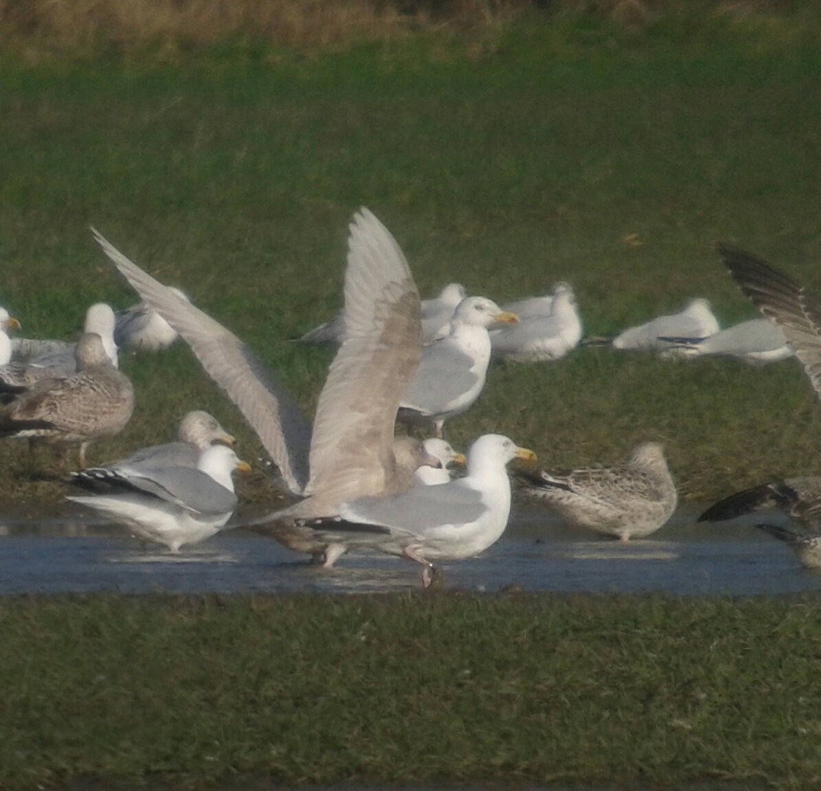 Juv Glaucous Gull in flelds at Little Crosby with c200 gulls at 1pm before flushed by horseriders and flew NE inland.Have been searching the local beaches for one of these for ages, but found this whilst looking through Pinkfoot flocks!
